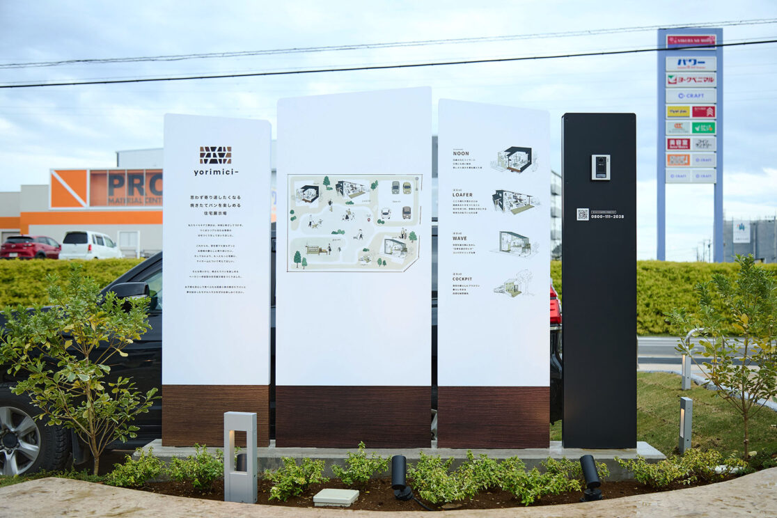 サインは、モデルハウスのスタイリッシュな佇まいに調和するように、洗練されたフォントとシンプルなレイアウトを採用。必要な情報を的確に伝え、訪れる人が迷わず目的の場所へたどり着けるよう、導線設計にも配慮しました。